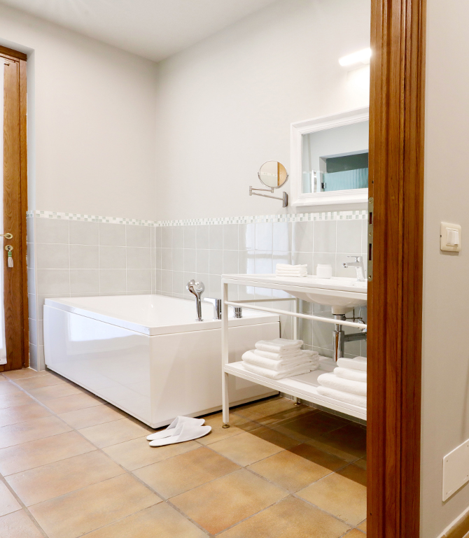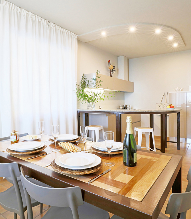 100mq, 1 camera matrimoniale con letto a baldacchino, 1 camera con due ampi letti singoli o a scelta matrimoniale, 1 salotto con divano letto matrimoniale, cucina completamente attrezzata e zona pranzo, 1 bagno con doccia e vasca idromassaggio, ampio porticato con zone pranzo e relax.